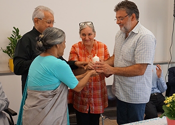 Ms.P.V. Marykutty, the founder of Christeen Ministry handed over the candle to the family of Mr. Gerhard and wife Renate Kornhuber, who have been taken the initiative to start Christeen Ministry in Austria as per God’s plan. It was a spirit filled, beautiful and unforgettable event.
